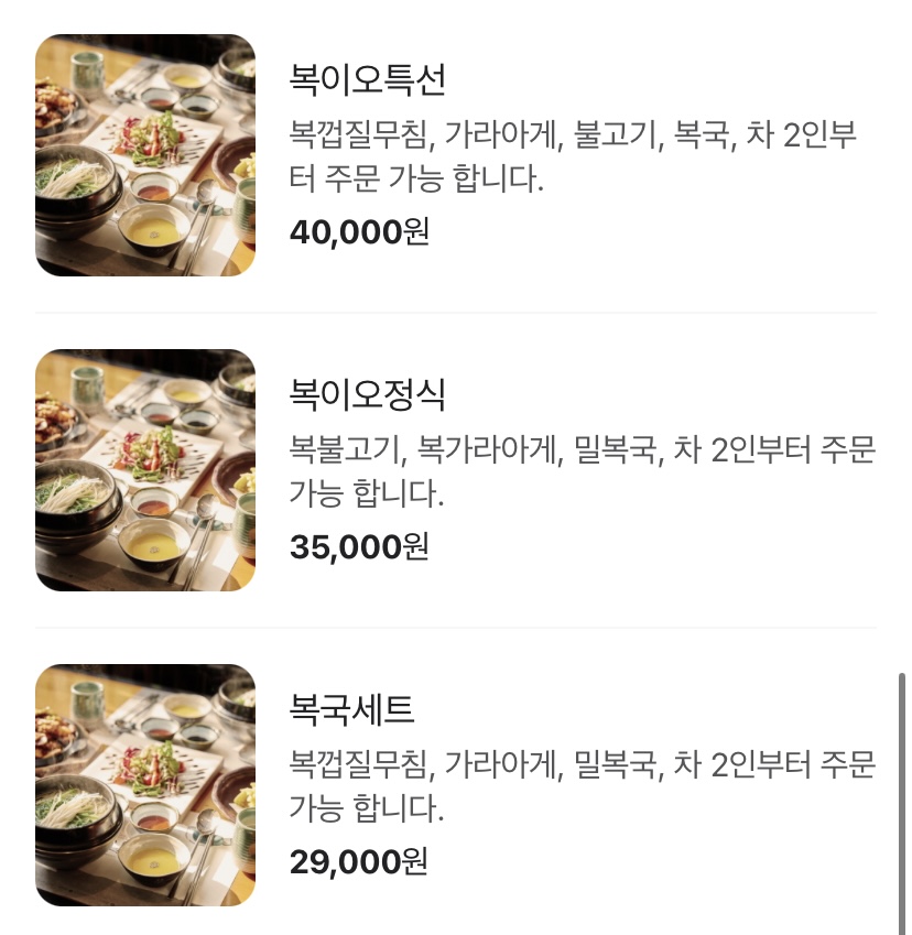 세트 메뉴: 다양한 세트 메뉴가 준비되어 있어 다양한 복어 요리를 즐길 수 있습니다.