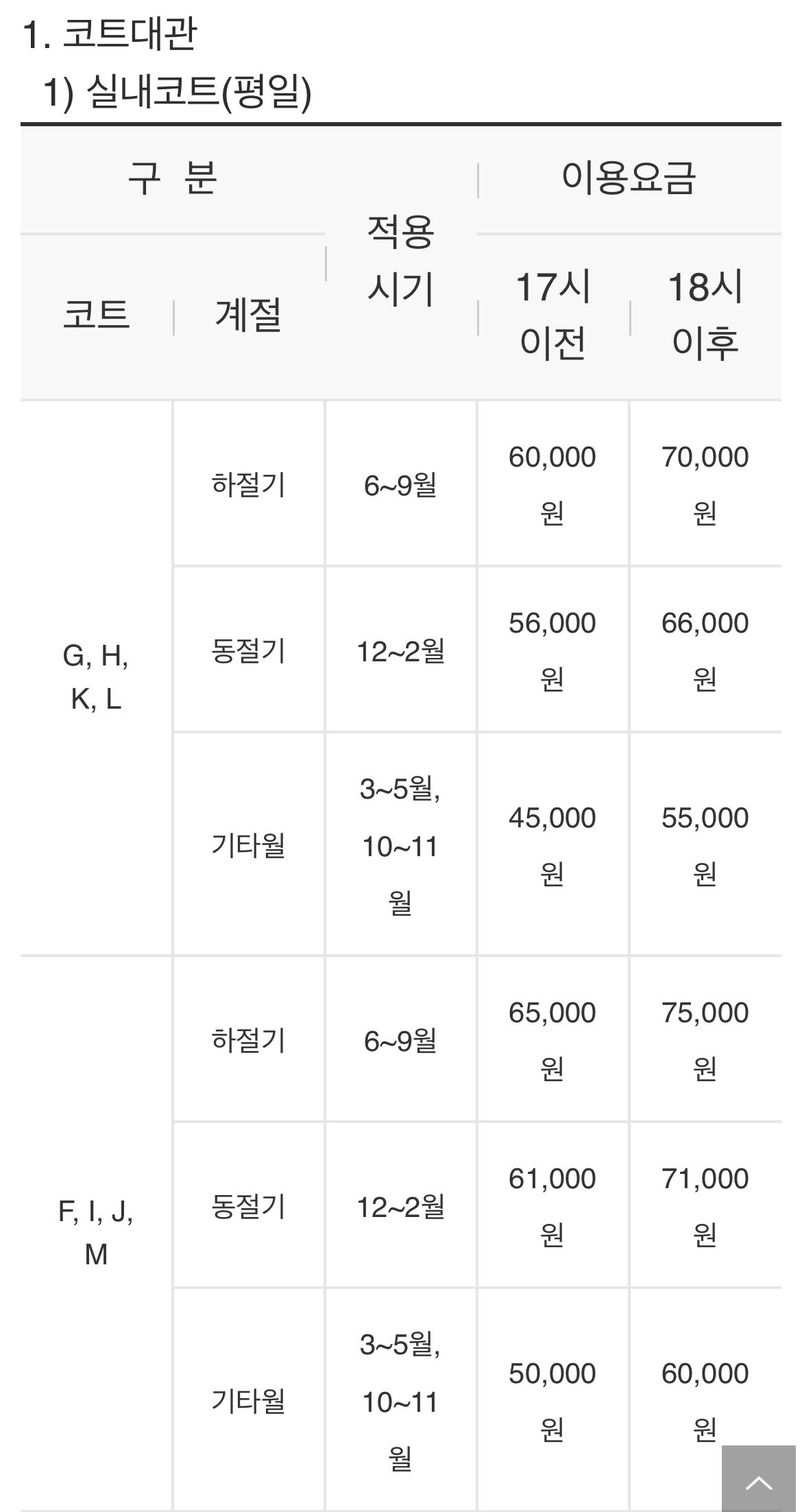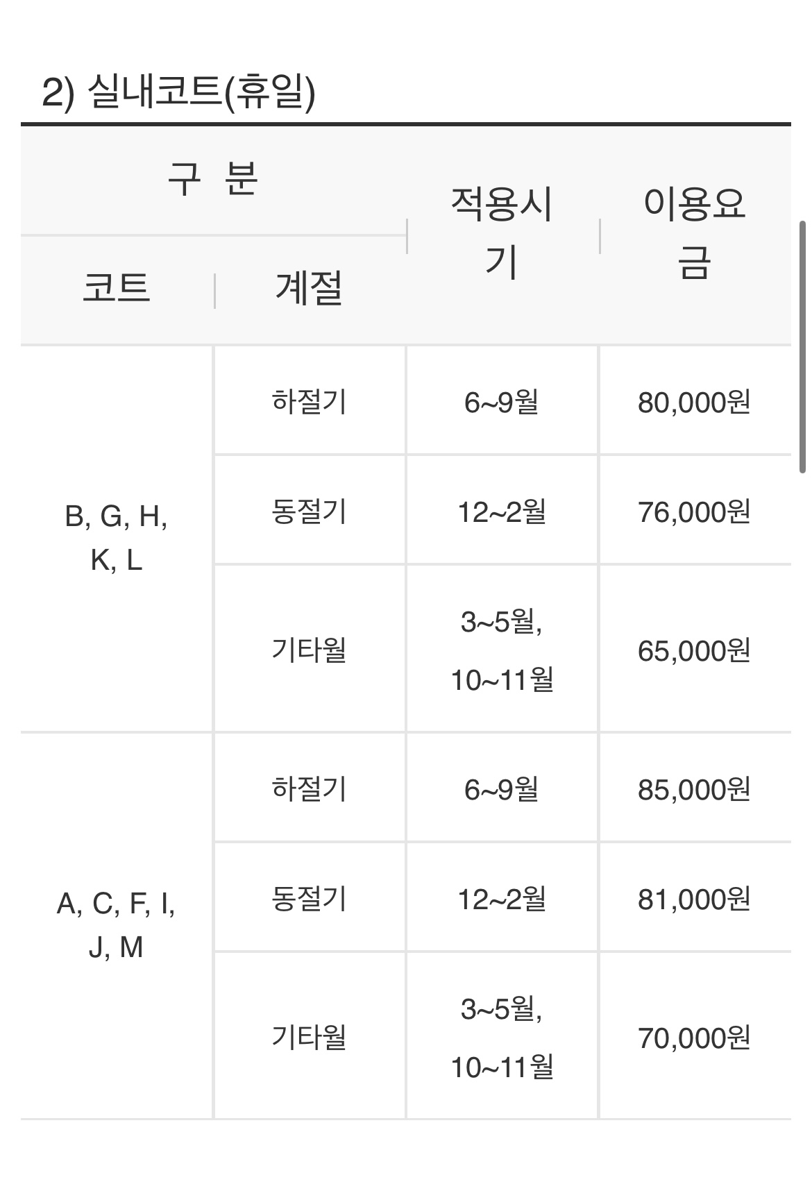 - 실내 코트: 날씨에 관계없이 연중 이용 가능