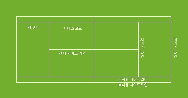 서비스 박스(서비스 코트): 서브가 적법한 것으로 간주되기 위해서는 서브가 착지되어야 하는 네트 양쪽의 직사각형입니다. 코트 양쪽에 두 개의 서비스 박스가 있으며, 듀스 쪽(오른쪽)에 하나, 광고 쪽(왼쪽)에 하나가 있습니다.