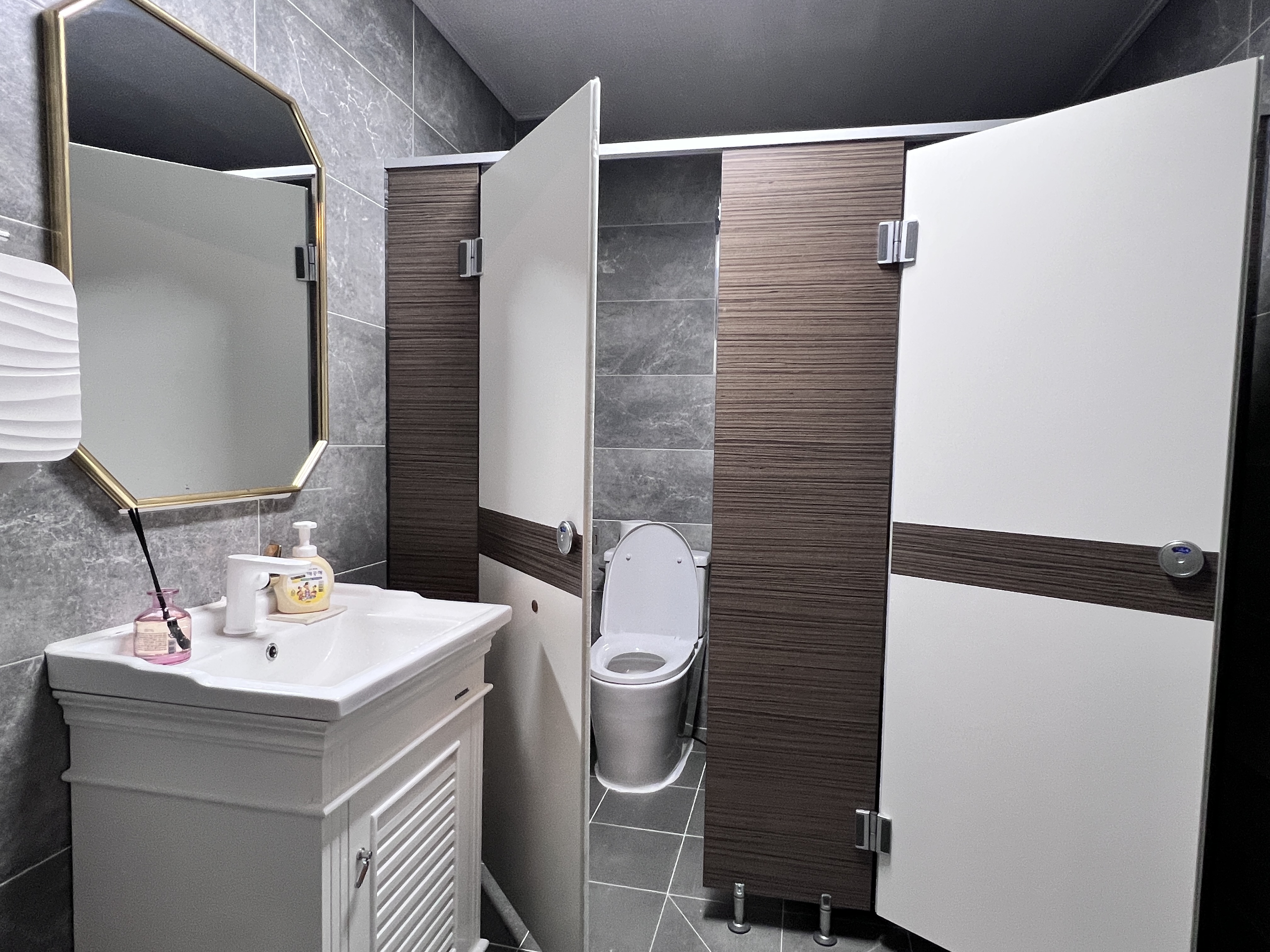 화장실에 들어서면, 방향제의 향기가 나서 기분이 아주 좋습니다.