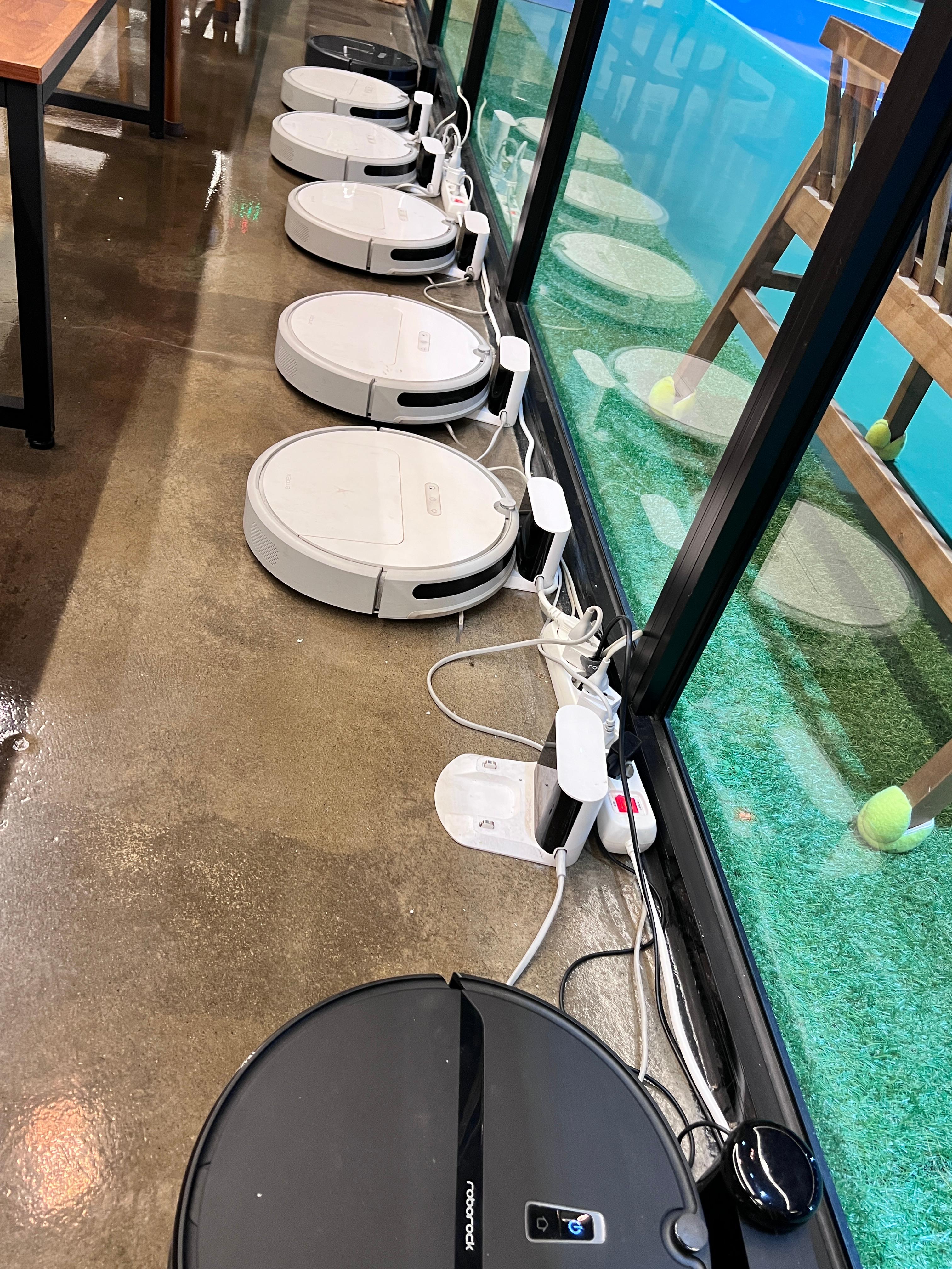 이렇게 많은 로봇 청소기 로봇을 보세요! 더라인 테니스장의 청결은 기대 이상입니다.